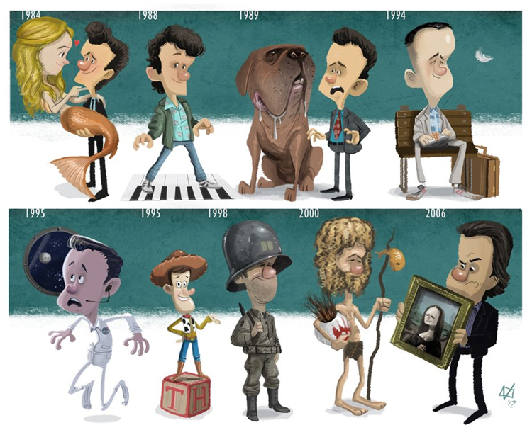 S?? n??o consegui identificar todas no Tom Hanks : mas adorei as ilustra????es, t??o giras!