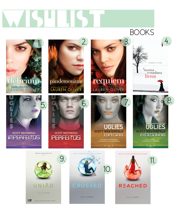 Tamb??m adooro livros e ?? rara a vez que n??o vou a um shopping que n??o traga um livro! Sa tua wishlist tenho apenas o The Perks of Being a Wallflower e tenho a dizer que ?? fant??stico! Adoro o filme e estou a adorar ler o livro!