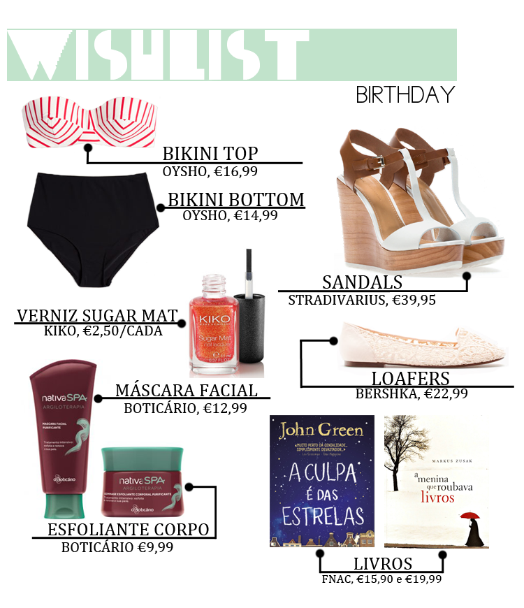 O meu maior desejo de anivers??rio j?? vos mostrei AQUI. Adorava que viesse morar um Kindle c?? para casa mas, juntamente com isso, gostava de acrescentar algumas coisas n??o s?? ao meu guarda-roupa (o meu bikini est?? a precisar desesperadamente de reforma) como tamb??m ?? minha estante (h?? uns tr??s livros que quero mesmo ter), ?? minha colec????o de vernizes (a KIKO anda a tentar-me com as promo????es nos vernizes) e ?? minha beauty routine (o Botic??rio tem dois produtos que quero muuuuito experimentar!).