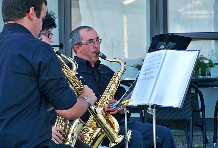 No dia a seguir ao Festival do Crato foi o dia do casamento ao qual eu e o M. fomos convidados. Acordamos cedo (depois de nos termos deitado tard??ssimo) para tratar dos ??ltimos pormenores antes de irmos. Por volta do meio-dia come??amos a almo??ar e logo depois foi uma corrida contra o rel??gio – mais minha do que dele – para dos despacharmos at?? ??s tr??s e meia. Depois de nos pormos todos bonitos e pipis – n??o quero soar a pirosa mas diga-se de passagem que o M. estava super elegante e todo gal?? – foi altura dele pegar no saxofone e nas folhas de m??sica (fazia parte do presente dele para os noivos) e l?? fomos n??s em direc????o ao local da cerim??nia debaixo de um calor abrasador.