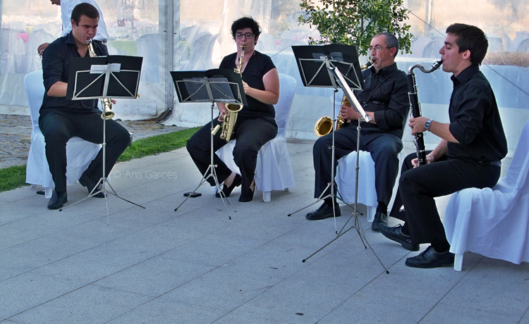No dia a seguir ao Festival do Crato foi o dia do casamento ao qual eu e o M. fomos convidados. Acordamos cedo (depois de nos termos deitado tard??ssimo) para tratar dos ??ltimos pormenores antes de irmos. Por volta do meio-dia come??amos a almo??ar e logo depois foi uma corrida contra o rel??gio – mais minha do que dele – para dos despacharmos at?? ??s tr??s e meia. Depois de nos pormos todos bonitos e pipis – n??o quero soar a pirosa mas diga-se de passagem que o M. estava super elegante e todo gal?? – foi altura dele pegar no saxofone e nas folhas de m??sica (fazia parte do presente dele para os noivos) e l?? fomos n??s em direc????o ao local da cerim??nia debaixo de um calor abrasador.