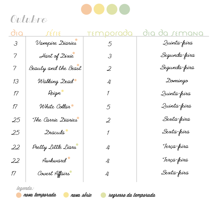 A pensar em voc??s, que tanto gostam de s??ries, decidi fazer um pequeno calend??rio para se orientarem com as estreias das novas temporadas ou das novas s??ries.