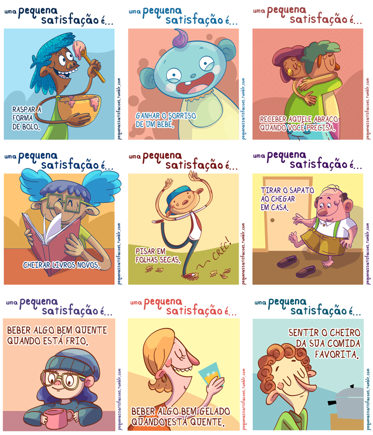 Desta vez a que vos trago ?? a Pequenas Satisfa????es Humanas, uma p??gina com ilustra????es descritivas de pequenos momentos t??o normais e t??o simples que por vezes nos passam ao lado e que nos deixam t??o felizes.