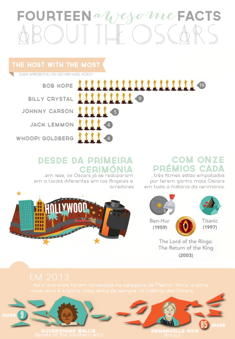 O brilho e o glamour dos Oscars encostam a um canto qualquer outra cerim??nia de entrega de pr??mios. Pensando nisso decidi partilhar com voc??s 14 factos interessantes sobre os Oscars para vos preparar para a cerim??nia do ano!