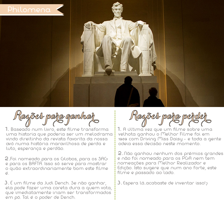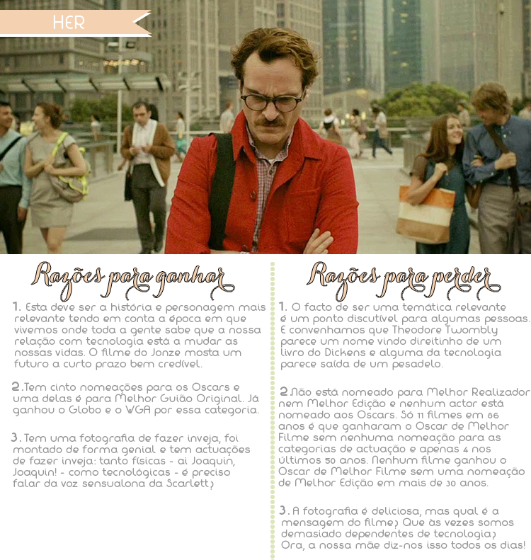 Custou mas li todinhos! Como s?? vi o "12 years a Slave" at?? agora (espero ter tempo para ver mais) n??o posso ter muitas opini??es sobre os outros.