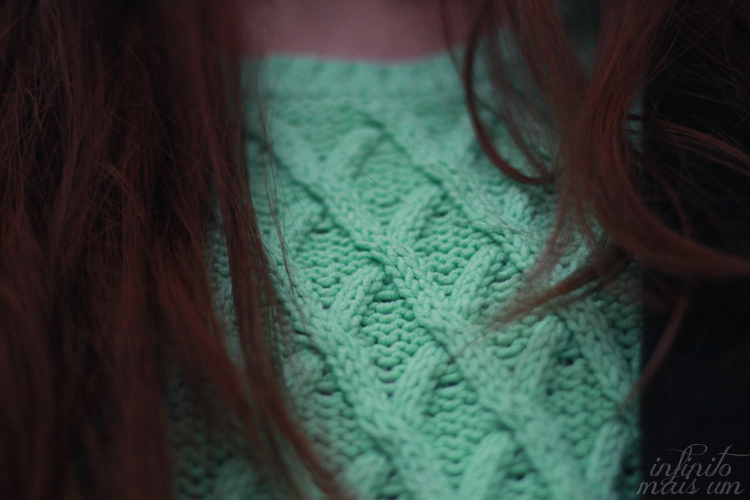 Adoro a camisola. Essa tonalidade de verde fica-te t??o bem, ?? t??o bonita, tem um qu?? de celta! E o tom ?? vibrante, salta ?? vista, gosto muito.
