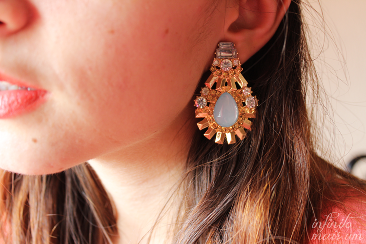 E, recentemente, descobri a minha nova paix??o por brincos. Antes s?? usava daqueles pequenos e discretos – e ainda os uso porque s??o mais pr??ticos – mas agora vejo-me cada vez mais atra??da por brincos grandes, que servem de statment piece, compridos, trabalhados, ?? la Carmen Miranda…