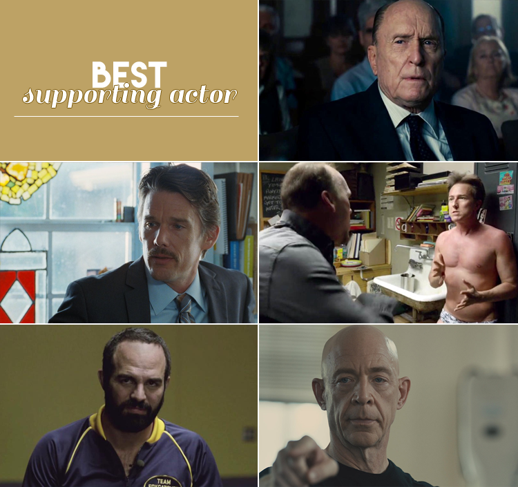 ROBERT DUVALL em THE JUDGE | ETHAN HAWKE em BOYHOOD | EDWARD NORTON em BIRDMAN | MARK RUFFALO em FOXCATCHER | J.K. SIMMONS em WHIPLASH