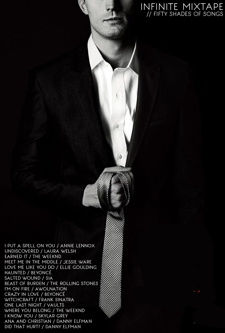 Eu explico: ao longo do livro s??o referenciadas muitas m??sicas (e boas!) para determinadas situa????es mas sobretudo quando eles est??o no quarto de brinquedos do Christian que, juntas, formam uma playlist extensa, ecl??tica e muito boa. Vai dai a curiosidade bateu mais forte e fui procurar a banda sonora oficial do filme e, meu amigos, ?? qualquer coisa de muito boa! Temos nomes como Beyonc?? (j?? devem saber esta), Frank Sinatra (amor de uma vida), Sia e Rolling Stones. S??o quinze m??sicas que vou partilhar com voc??s.
