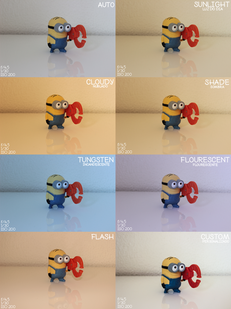 Todas as c??meras – sejam elas DSLR ou compactas – t??m diferentes configura????es para o white balance. Alguns dos b??sicos s??o: