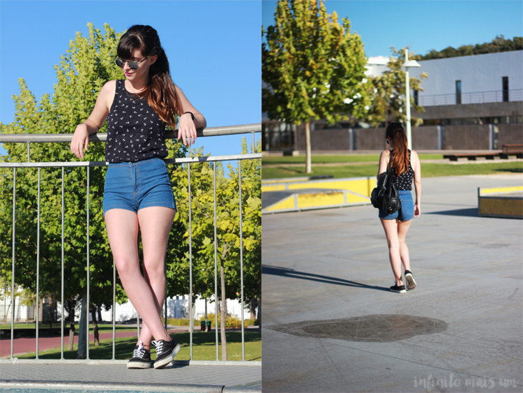 Seguindo o mote do outfit post anterior este aqui tamb??m serve para mostrar mais duas pe??as que comprei nos saldos: uns cal????es de ganga de cintura subida (que andei anos ?? procura e finalmente encontrei – score!) e um top giro e fofinho.